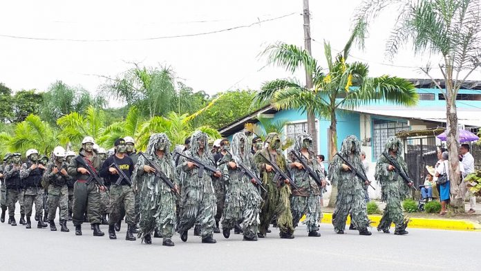 El Comando Conjunto de las Fuerzas Armadas ha informado del refuerzo de patrullajes en sectores conflictivos, accesos viales, puertos, barrios y zonas comerciales. Las operaciones incluyen control de armas, municiones y explosivos, así como tareas de inteligencia en un contexto de estado de excepción vigente en siete provincias del país, incluido Manabí. Esta medida fue decretada por el presidente Daniel Noboa, quien desde inicios de 2024 declaró al país en «conflicto armado interno» ante el avance del crimen organizado.