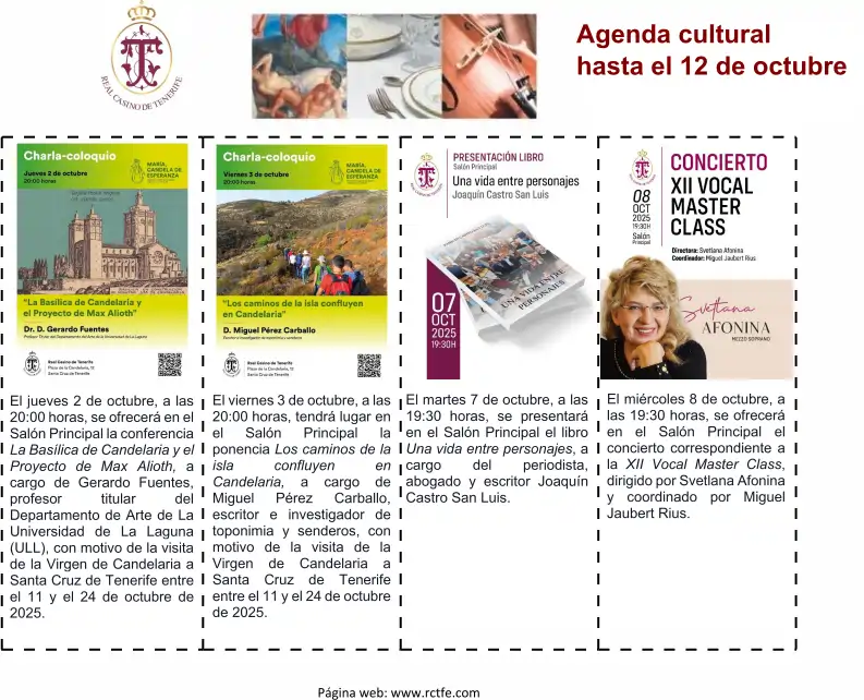 Se adjunta agenda cultural hasta el 12 de octubre.