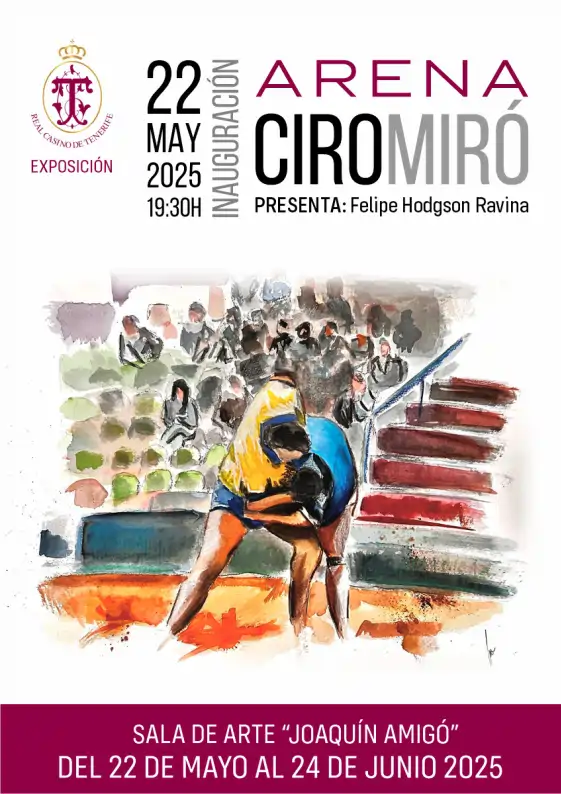 También he tenido ocasión de visitar la exposición “Arena”, del pintor Ciro Miró, que fue presentada por Felipe Hodgson Ravina el pasado 22 de mayo, y que es un homenaje a la lucha canaria. En la sala de arte “Joaquín Amigó”. Perdí un cuadrito sobre la lucha que me regaló el pintor tinerfeño Padrón. Lo dejé en el piso de Madrid cuando se lo entregué a CajaCanarias, en la crisis de 2008, que me dejó sin un euro en el bolsillo. Y, encima, la Hacienda ladrona me cobró el 17% de la dación en pago (que no le pagué. ¿Por qué?: porque no tenía dinero, que era lo que decía don Paco del Castillo cuando los godos de la central le preguntaban al director lagunero del Banco de Vizcaya que por qué ese señor no pagaba su crédito. Don Paco respondía: “¿Por qué va a ser?: pues porque no tiene dinero”). No sé qué fue de ese cuadrito ni de los otros que tenía colgados en el piso. Y es una pena, porque eran valiosos. Me los pintó un artista callejero de Madrid, de la Plaza Mayor, que mereció portada en la revista semanal de “El País” y tampoco conozco su paradero. En fin, una pena. Salvé pocas cosas de aquel piso. Pero les animo a que visiten la muestra de Ciro Miró. Por cierto, se come muy bien en el Real Casino (me invitaron) y muy barato. Miguel Cabrera Pérez-Camacho ha enderezado la economía de la sociedad, que tiene una actividad cultural impresionante. Desde hoy tienen ustedes la programación completa de esa actividad en cada edición de El Burgado, además de los comunicados de la presidencia y otras noticias de interés para los socios. Es muy difícil encontrar fechas libres para organizar eventos en el Real Casino, todas las actividades están reservadas con meses de anticipación. Además, la pinacoteca de la sociedad crece cada día y la colección de cuadros que atesora, además de los murales de Aguiar y de Néstor, estos últimos que se encuentran en la segunda planta del edificio, son muy apreciables.