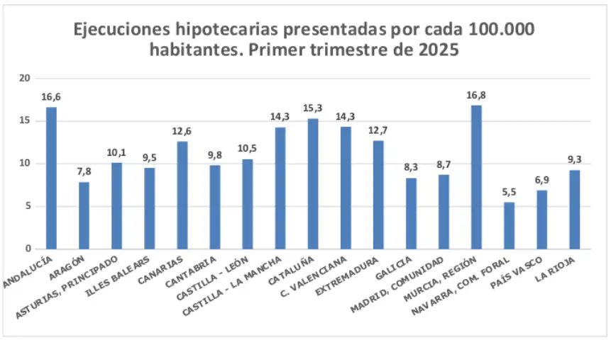 Sin embargo, si se pone el número de ejecuciones hipotecarias en relación con la población, el resultado es el siguiente: