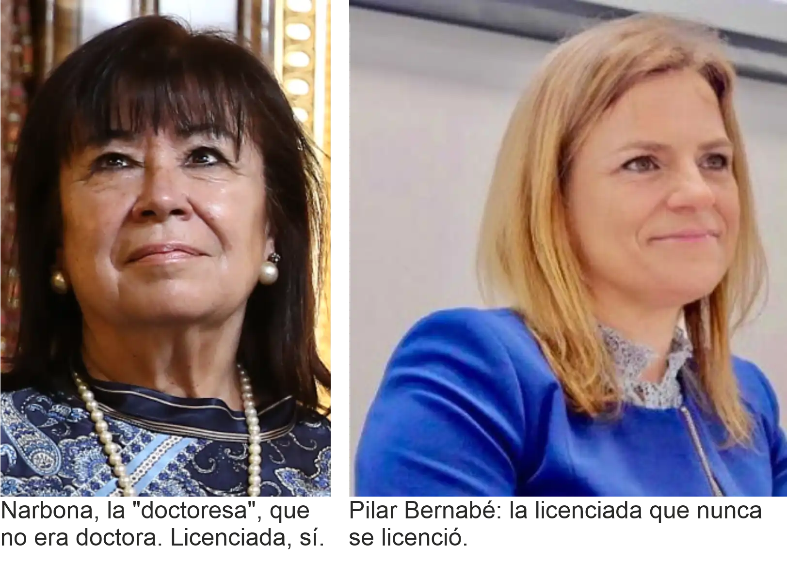 Yo creo que Puente, con esa cara, no sacará jamás un máster de verdad y se tiene que agarrar a uno chimbo para tener algo que decir en el currículo. Estos, como la Bego, quieren hacer carreras sin hacerlas, son vagos inmisericordes y sólo pretenden engordar sus currículos a fuerza de mentiras, de confusiones interesadas. Es como si yo pusiera en mi currículo: “Estudió Medicina en Sevilla”. ¡Pero si sólo aprobé el inglés y me pasé allí dos años de puta madre, desmayándome cada vez que veía a un muerto en la sala de disección, hasta que mi padre me trajo por las orejas, que todavía me duelen! Otra que tal baila es la presidenta del PSOE, Cristina Narbona, que se tituló doctora por la Universidad de Roma, cuando en Italia no existían entonces los doctorados académicos (ahora, tras el Plan Bolonia, sí) y que la palabra “dottoressa” equivale a una antigua licenciatura en España.