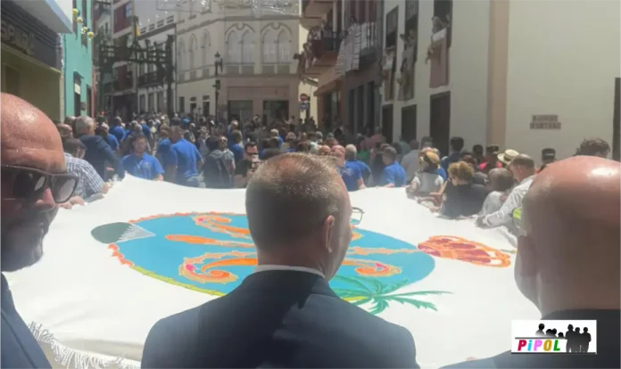Tiene el don de la ubicuidad, está confirmado. Rodeado siempre de bonitas mujeres palmeras, que eso sí que tiene La Palma, mujeres guapísimas. Son las palmeras las más guapas de Canarias, las más altas, las más elegantes. Ayer, ya lo dije, se produjo el izado y la bendición de la bandera mariana, después de diez años, la procesión hasta el castillo, la misa romera y todo eso que le gusta tanto a los palmeros. Dicen que jamás había asistido tanta gente a estos festejos, que el aeropuerto estaba lleno a rebosar, que Binter se vio obligada a reforzar sus líneas entre Tenerife y La Palma, que los aviones iban y venían a tope, que la Calle Real estaba preciosa y que los palmeros vibraban porque hacía tiempo que las fiestas no se celebraban, supongo que por el covid, aunque no estoy yo muy puesto en estas zarandajas.