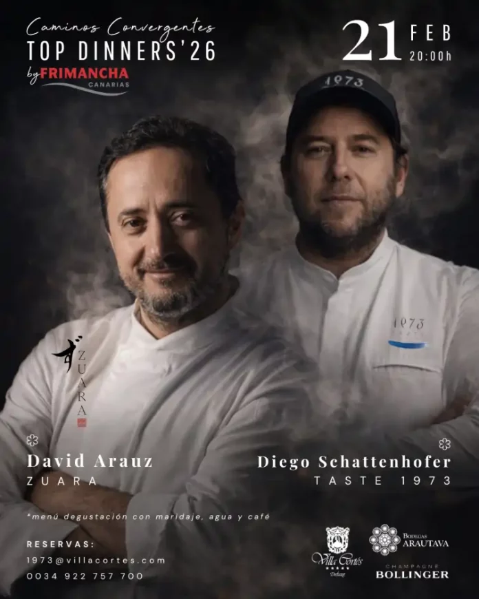 El restaurante Taste 1973, ubicado en el Hotel Villa Cortés, acogerá el próximo sábado 21 de febrero de 2026 a las 20:00 h un evento gastronómico de carácter excepcional: una cena a cuatro manos protagonizada por David Arauz, junto a Diego Schattenhofer, chef y director creativo de Taste 1973.