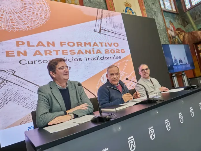 El Cabildo de Tenerife, a través de la Empresa Insular de Artesanía S.A., pone en marcha el Plan Formativo en Artesanía 2026, que contempla más de 500 horas de formación presencial en oficios artesanos tradicionales, con el objetivo de preservar y promover el patrimonio cultural, así como impulsar el relevo generacional en el sector. Así lo ha presentado hoy (viernes) el consejero de Empleo y de Educación, Efraín Medina, en rueda de prensa celebrada en el Salón Noble, a la que también ha asistido el gerente de la Empresa Insular de Artesanía, Ricardo Cólogan; el responsable del departamento de Educación, Domingo Reyes; el segundo teniente de alcalde de Arona, Naím Yanes; la concejala delegada de Empresas Municipales de Candelaria, Mónica Yanes; el concejal de Modernización de La Orotava, Sergio Martín; el concejal de Promoción y Desarrollo Local de Laguna; Domingo Galván y el concejal de Fiestas y Participación Ciudadana de Santa Cruz de Tenerife Javier Caraballero.