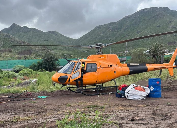 El Cabildo de Tenerife, a través del área de Carreteras, avanza en los trabajos de emergencia que se están ejecutando en la carretera TF-13, a la altura de Bajamar, mediante la utilización de helicópteros para el traslado de material de construcción destinado a la instalación de barreras de contención en el talud. El uso de estas aeronaves permite acceder a zonas de difícil acceso y agilizar el desarrollo de las actuaciones de seguridad en este punto de la vía.