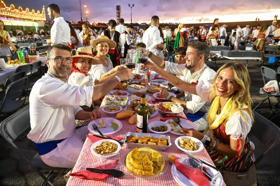 La cena dio comienzo a las 21:00 horas y tuvo lugar en un recinto cerrado, que exigió a los asistentes presentarse con vestimenta típica canaria. Las reservas se agotaron rápidamente el mismo día que se pusieron a la venta los tickets a través de la plataforma online el pasado lunes 7 de julio. Ante la alta demanda, se decidió ampliar el número de mesas al día siguiente, sumando 35 más a las 200 inicialmente disponibles, lo que permitió albergar a un total de 2000 personas y disfrutar de esta experiencia única al ritmo de música canaria.