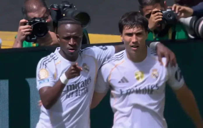 La apertura del marcador llegó en el minuto 34, cuando un contragolpe muy bien hilado —orquestado por Trent Alexander‑Arnold, en su estreno— desembocó en el gol de Gonzalo García, que definió, con temple y en semifallo, tras recibir la asistencia de Rodrygo. ¿O fue de Vinicius? Tendré que revisarlo, porque sería la única pelota que tocó Vinicius en todo el encuentro, hasta que lo cambiaron. Era el premio injusto a un primer acto donde el Madrid no impuso del todo un dominio territorial.