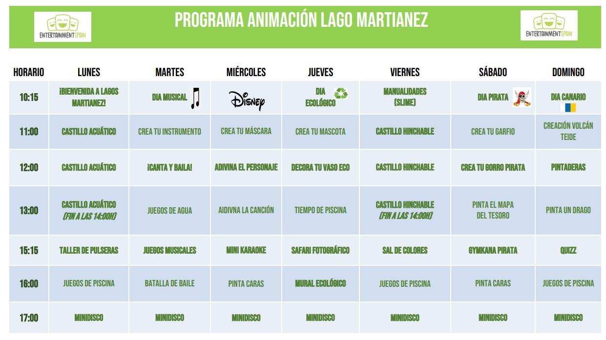 • Actividades recurrentes: Juegos en la piscina, castillos hinchables acuáticos, talleres de pulseras, líneas de colores y una Mini Disco que cerrará cada jornada con música y baile.