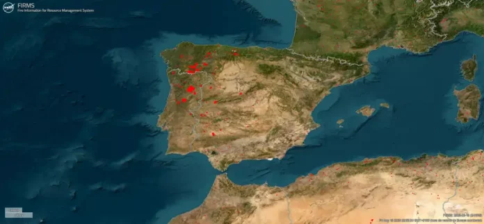 Esta semana, España ha superado las 110 000 hectáreas arrasadas, con 16 incendios activos de riesgo extremo entre Ourense, Zamora, León y Cáceres. En Galicia, se ha interrumpido el servicio ferroviario entre Madrid y Ourense y se han cerrado varias carreteras. Según el Ministerio del Interior, más de 5 700 personas han sido desalojadas en toda la nación.