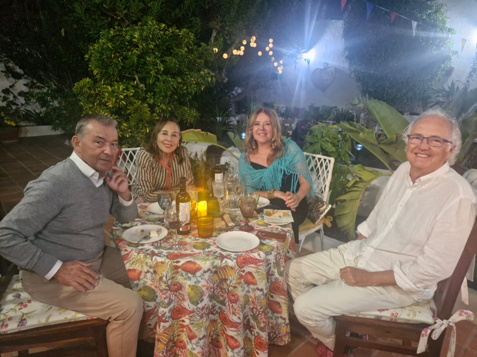 Mucho traje veraniego, aunque la noche estaba fresquita y las señoras tuvieron la precaución de llevar alguna rebequita ligera, tipo verano lagunero, un suponer. Esta es una crónica de urgencia, fresca, así que no me vayan a pedir mucho detalle, ni tampoco una prosa primorosa. Loli repartió regalos entre algunos de los asistentes. Se trata de una reunión social muy original, a la que no faltó su hija, Lolita Tomé Palliser, abogada como su madre. El esposo de Loli, Manolo Medina, exdiputado europeo y catedrático de Derecho Constitucional, muy saludador y dialogante, como siempre, va camino de sus espléndidos 90 años, que creo que va a cumplir el próximo mes de diciembre. Loli me parece que tiene mi edad, 78, año más, año menos. Será difícil documentarlo, yo lo he intentado. En todo caso, una gran persona, una mujer luchadora y valiente, que lo intentó en el terreno de la empresa turística y que ahora tiene un despacho profesional en el campo del Derecho. Su fiesta ya digo que marca el final del verano y que es todo un acontecimiento social en Lanzarote, una isla cada vez más de moda y no precisamente porque los Sánchez hayan “okupado” el palacete costero de La Mareta. En fin, esta es la pequeña crónica del evento. Ahora, cada uno para su casa, que agosto ya agoniza y termina esta semana, el domingo 31. En la fiesta de los Medina-Palliser caben todos y no se habla de política, en lo posible. Como debe ser. Menos mal que no se le ocurrió a Loli invitar a los Sánchez, porque le hubieran estropeado su alegría. Y, además, están ahora en Andorra, esquiando en agosto sobre tierra. Ni a Zapatero, porque igual le habría llevado a Maduro para alegrarle al sátrapa sus horas bajas.