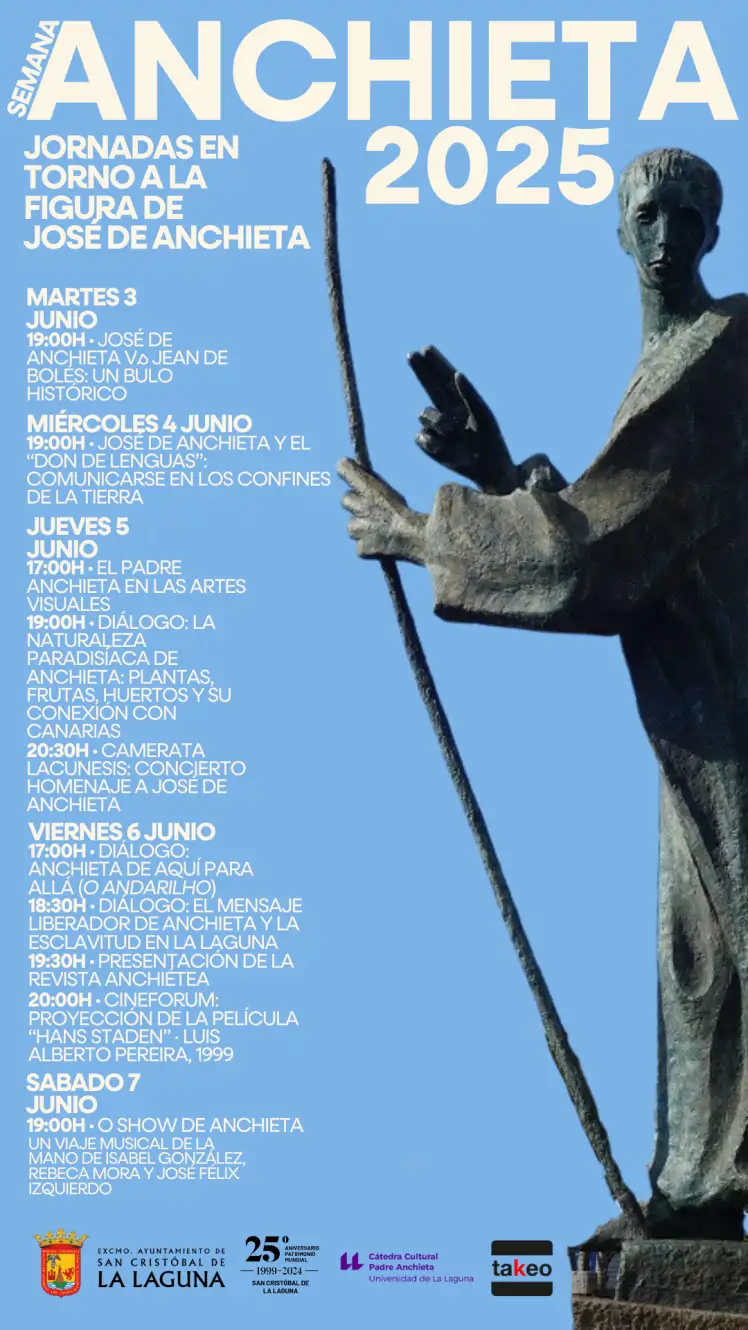 El programa finalizará el martes 10 de junio, a las 19:00 horas, con la ponencia “La escultura de Anchieta, BIC e IA”, impartida por el catedrático de Tecnología de Secundaria Antonio Hernández Hernández y promovida por la Hermandad de Caballeros y Damas de San José de Anchieta.