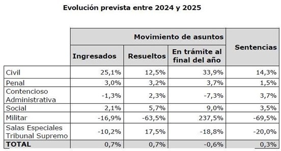 En base a las series históricas trimestrales disponibles, llegando en este caso al primer trimestre de 2025, el CGPJ ha realizado una previsión para el conjunto del año 2025.