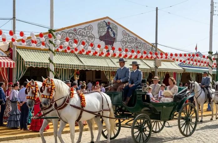 A las nueve y media de la noche, tras abrirme paso entre jarras de rebujito, caballos, coches de caballos y masas de gente que se movían al mismo tiempo en direcciones incompatibles, por fin llegamos a la portada de la Feria de Sevilla y le dije a mi mujer, con la solemnidad de las grandes decisiones: