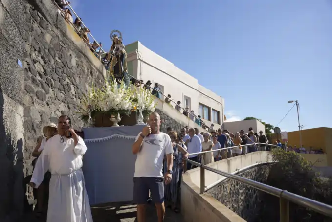 La agenda de este próximo domingo arrancará a las 17:00 horas, con la ceremonia religiosa y el rezo del Santo Rosario que precederá al inicio de la procesión en la que los feligreses acompañan a la patrona de los marineros. A continuación, tendrá lugar el esperado embarque y la interpretación del Ave María en El Roquete, a cargo de la solista Miriam Reyes, la cual recogerá el testigo que ha dejado Chago Melián durante más de 40 años interpretando esta pieza tan representativa.