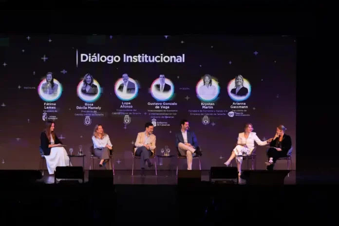 En este espacio participaron Rosa Dávila, presidenta del Cabildo de Tenerife; Lope Afonso, vicepresidente del Cabildo; Krysten Martín, consejera de Comercio y Apoyo a la Empresa; Gustavo González de Vega, viceconsejero de Economía e Internacionalización del Gobierno de Canarias; Fátima Lemes, alcaldesa de Arona; y Arianna Gassmann, presidenta de la Asociación de Jóvenes Empresarios de Tenerife (AJE).