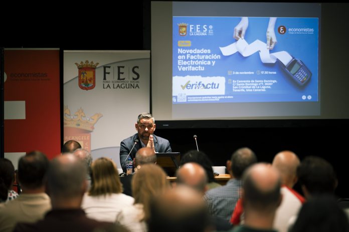 La sala de cristal del antiguo convento de Santo Domingo completó ayer su aforo disponible, con motivo de la celebración de un taller gratuito sobre nuevas fórmulas de facturación electrónica, dirigido a pequeñas y medianas empresas de La Laguna. Esta acción, impulsada por el Foro Económico y Social del municipio, sirvió para poner en conocimiento de los presentes las obligaciones, plazos y programas que ha establecido la Agencia Tributaria para el 1 de enero de 2026. En esta ocasión, el ponente principal fue el asesor fiscal y Doctor en Derecho y Nuevas Tecnologías, Samuel Cruz.
