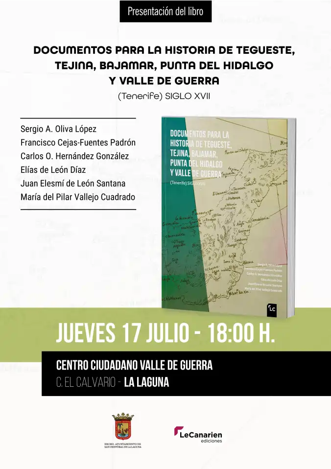 Este trabajo colectivo, editado por Le Canarien Ediciones y que cuenta con la colaboración de la concejalía de Patrimonio Cultural de La Laguna, ha contado con la participación de Sergio Oliva, Francisco Cejas-Fuentes, Carlos Hernández, Elías de León, Juan Elesmí de León y María del Pilar Vallejo. Además, la obra ha sido prologada por el profesor de Historia Medieval de la Universidad de La Laguna y director del Instituto de Estudios Canarios, Roberto J. González Zalacaín.
